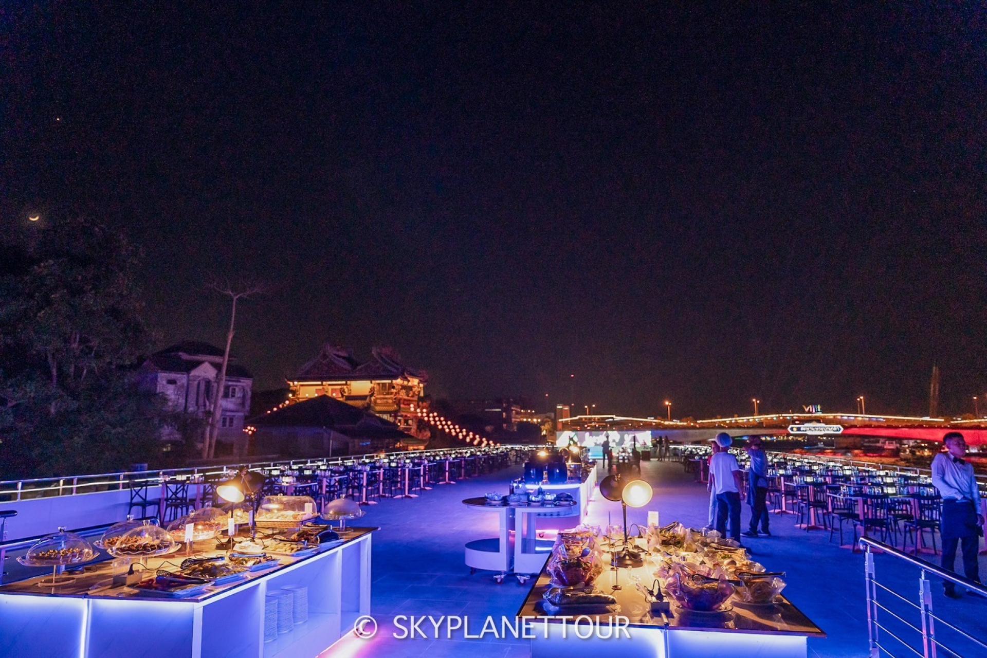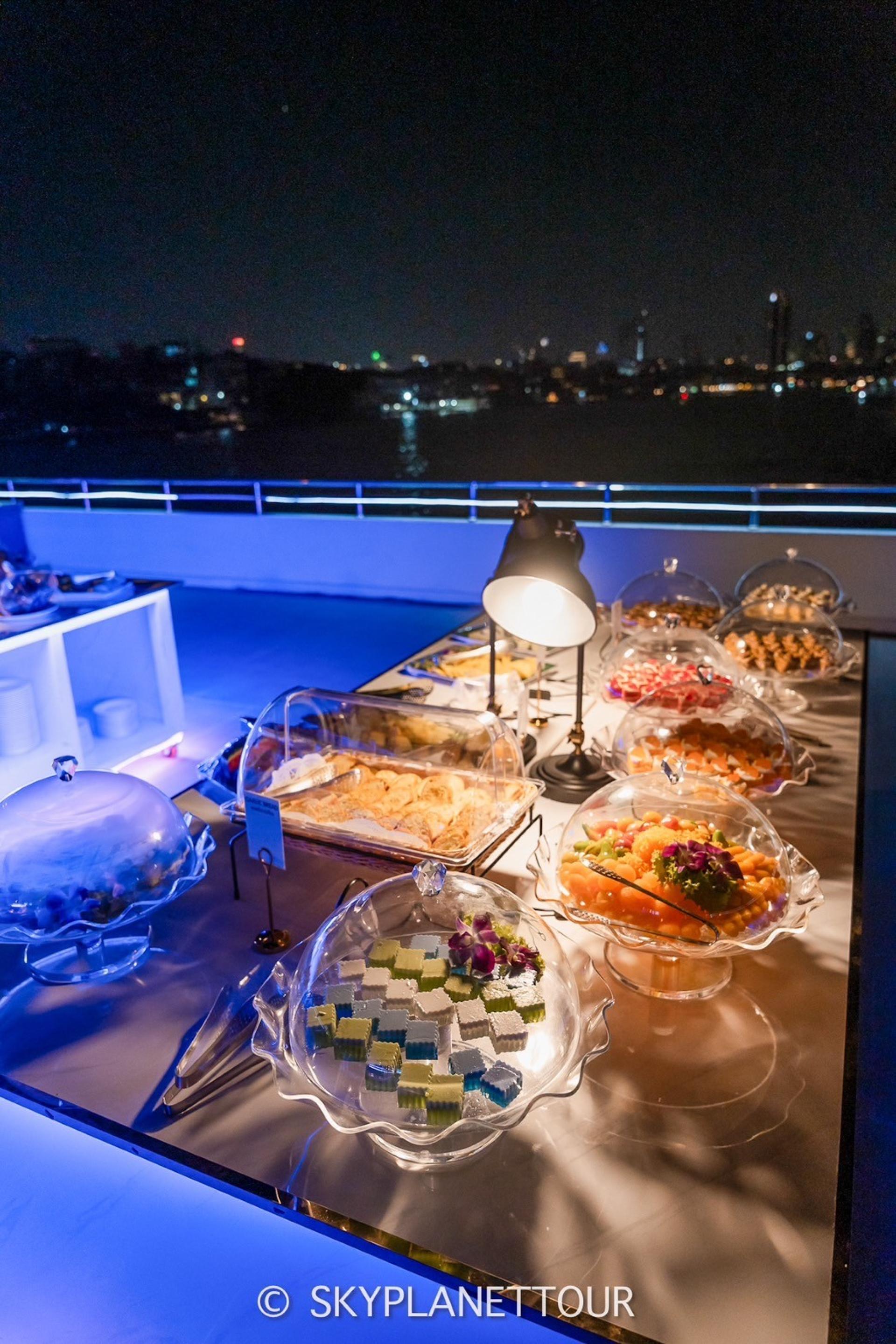 : บุฟเฟต์เบียร์ และไวน์แดง ไวน์ขาว น้ำอัดลม ตลอดการล่องเรือ ทุกวัน